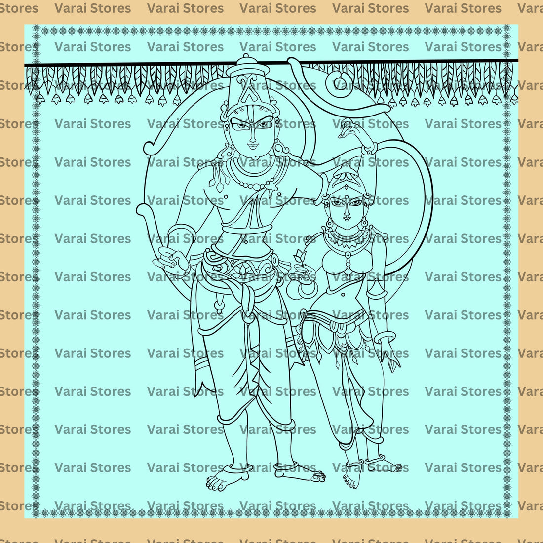 Ram Sita Sketch - Fabric With Pole Pocket