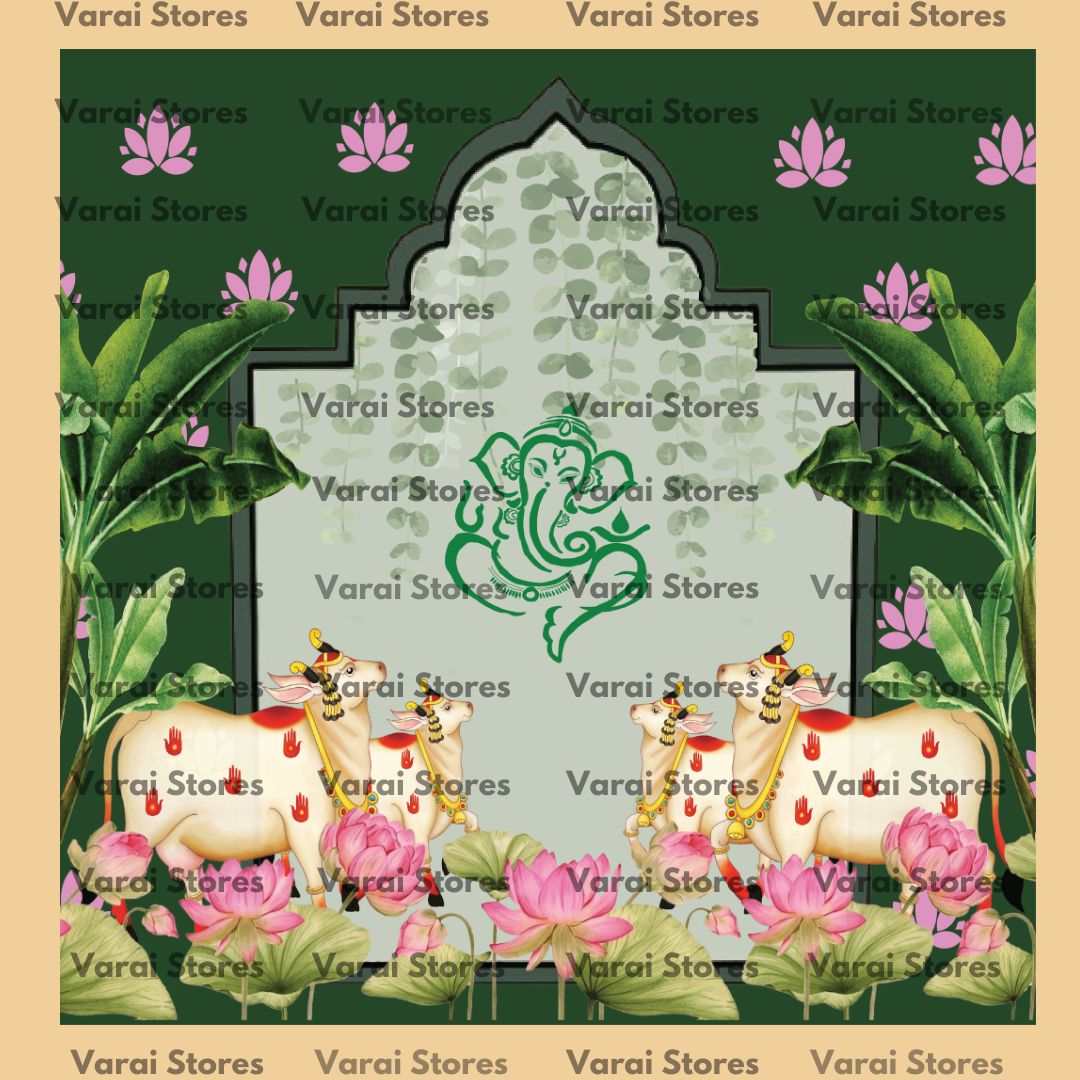 Pichwai Green Ganesha - Fabric With Pole Pocket
