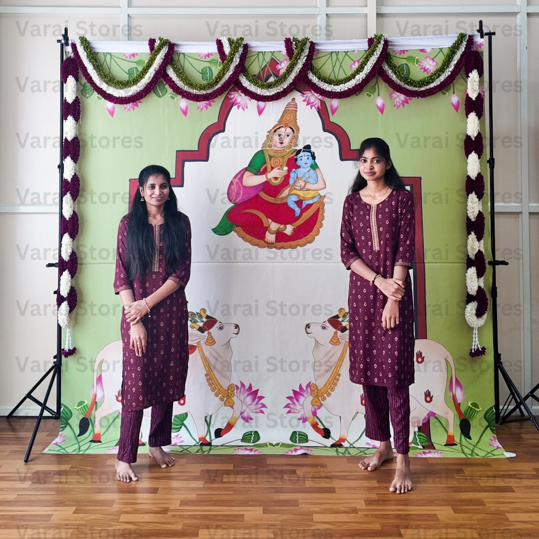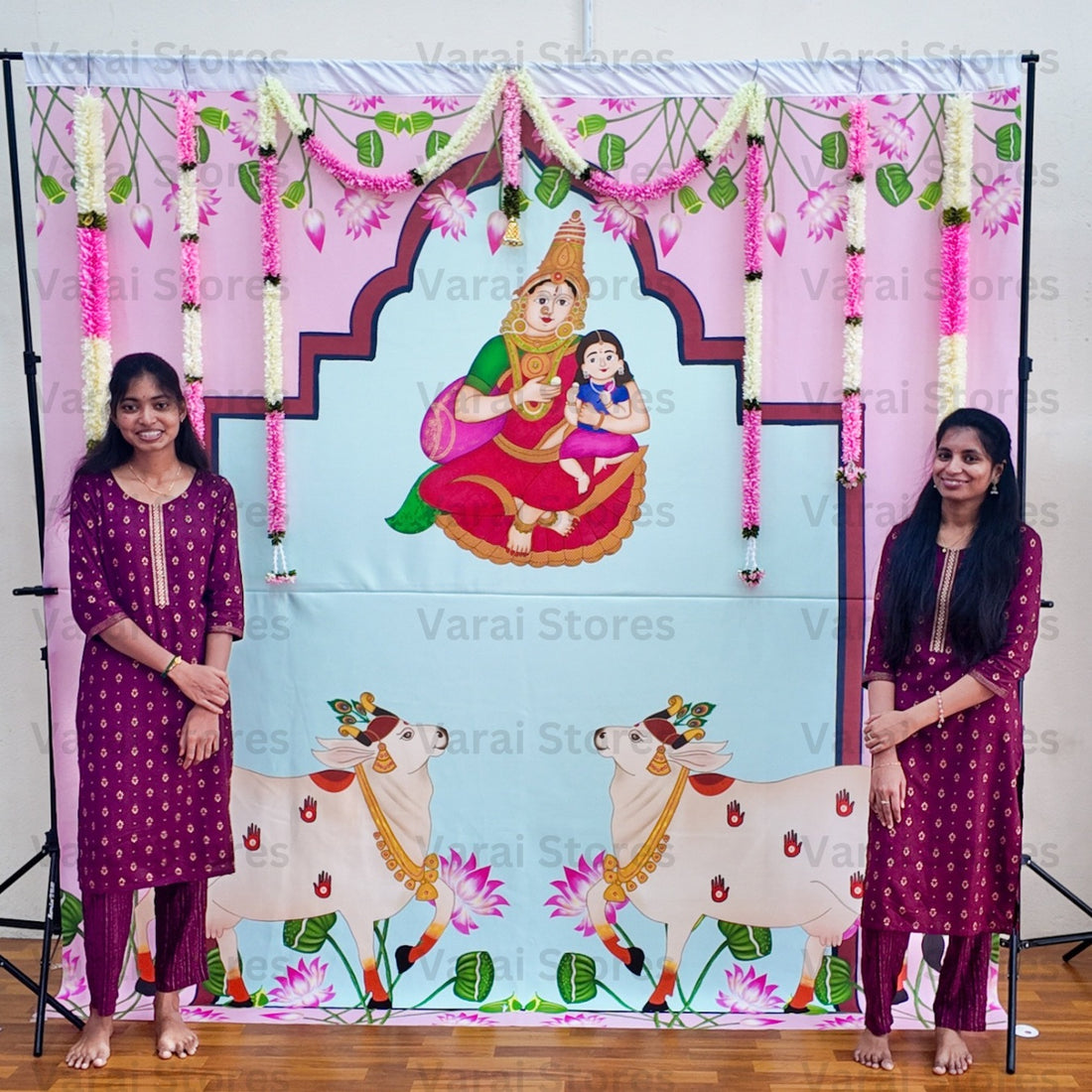 Annapoorani Devi With Baby Girl - Fabric With Pole Pocket