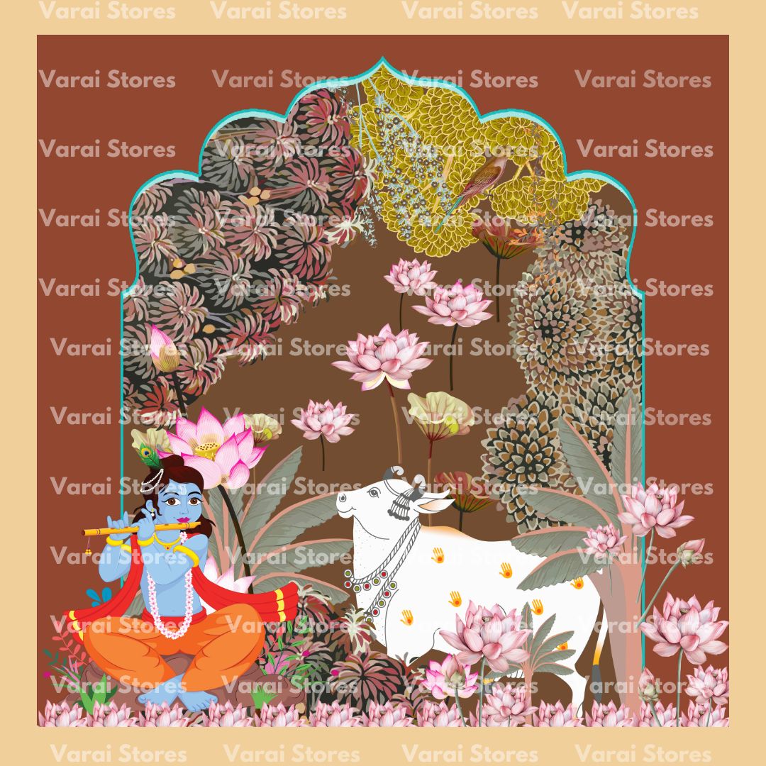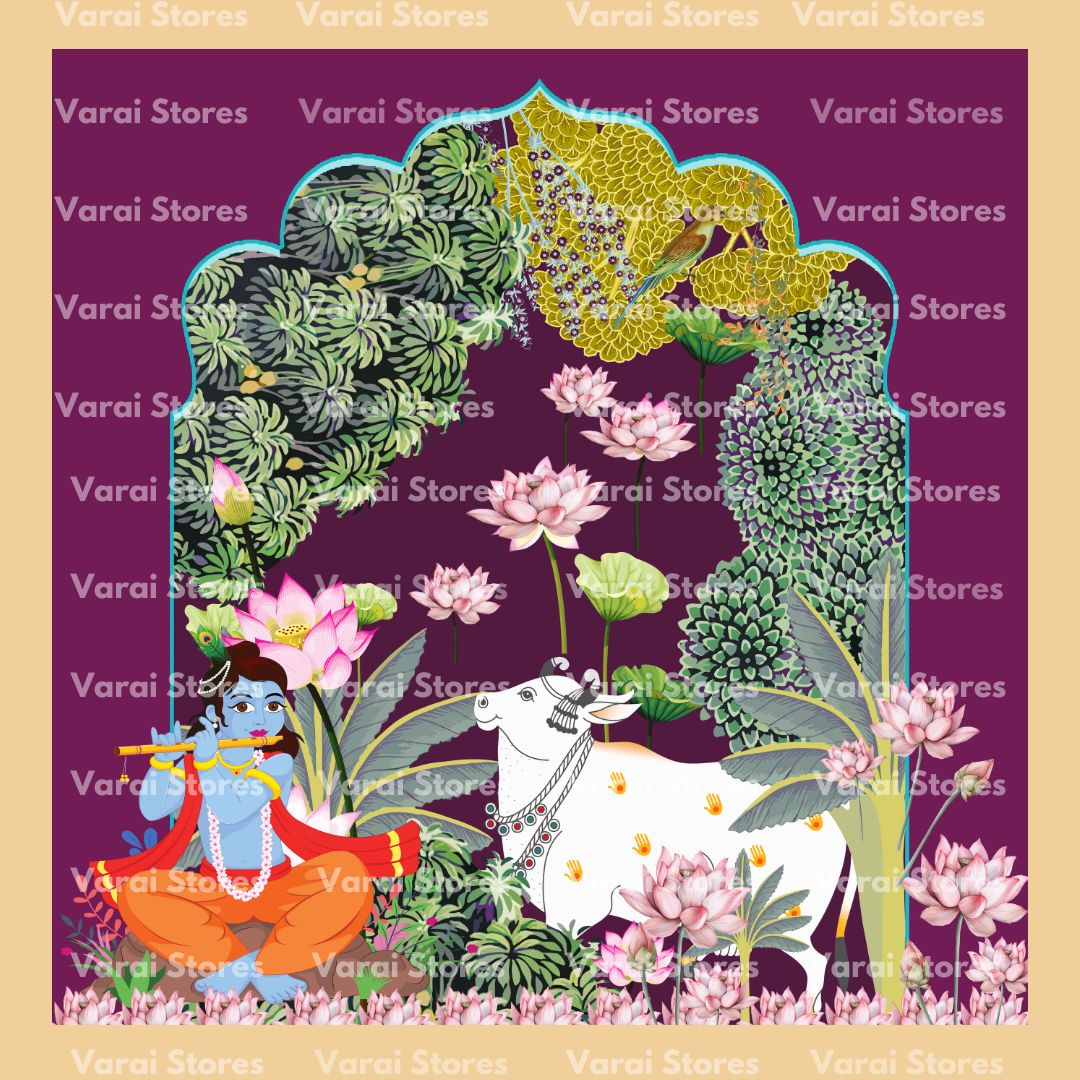 Krishna Lotus Peacock - Fabric With Pole Pocket